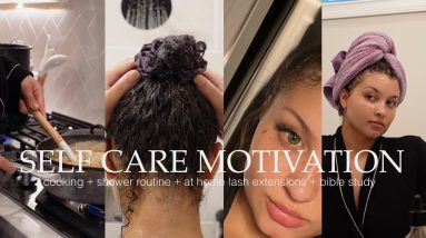 SELF CARE MOTIVATION || girl get up + shower routine + diy lash extensions + cooking + bible study||