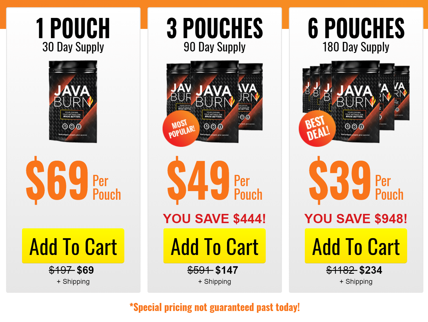 Java Burn is a premium product that is only available on the official site and cannot be purchased on any other platform since the company doesn't sell its products in other places. All packages come with free shipping, which means buyers don't have to include this cost in the final price. The company also offers 60-day money-back guarantee on every purchase. If the product does not work in the manner it was promised, at any point in the course of use, the buyer can return it within the specified period for a complete refund.